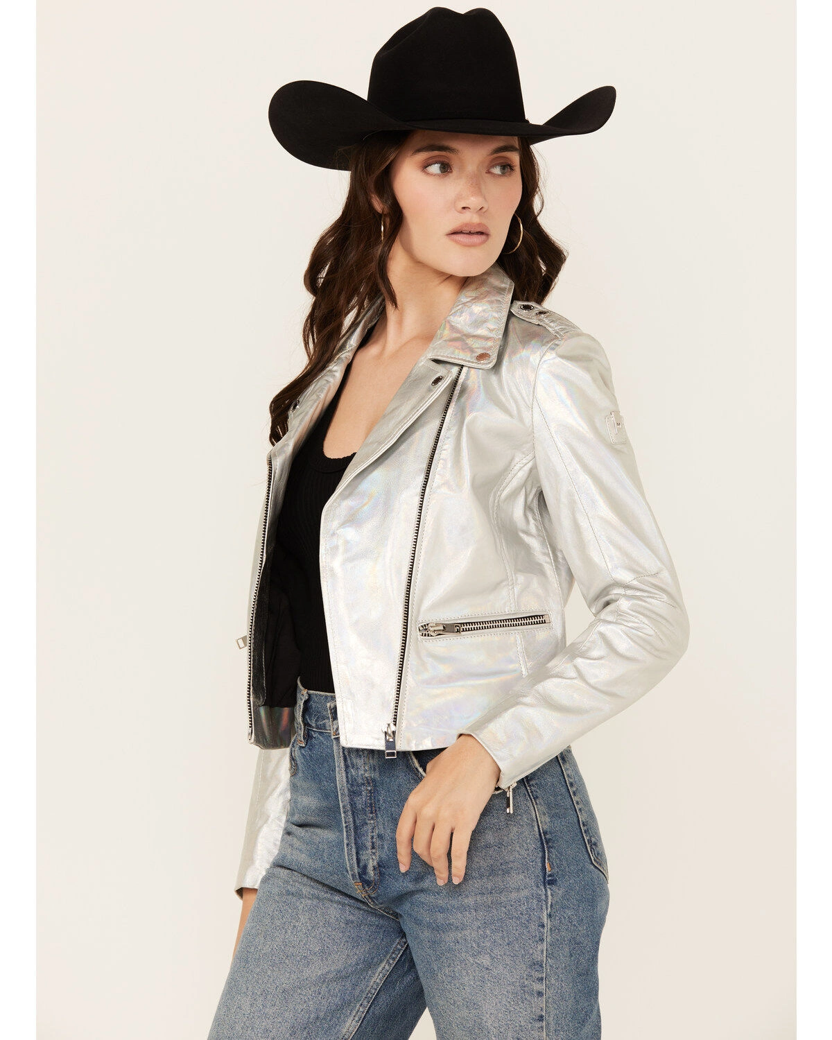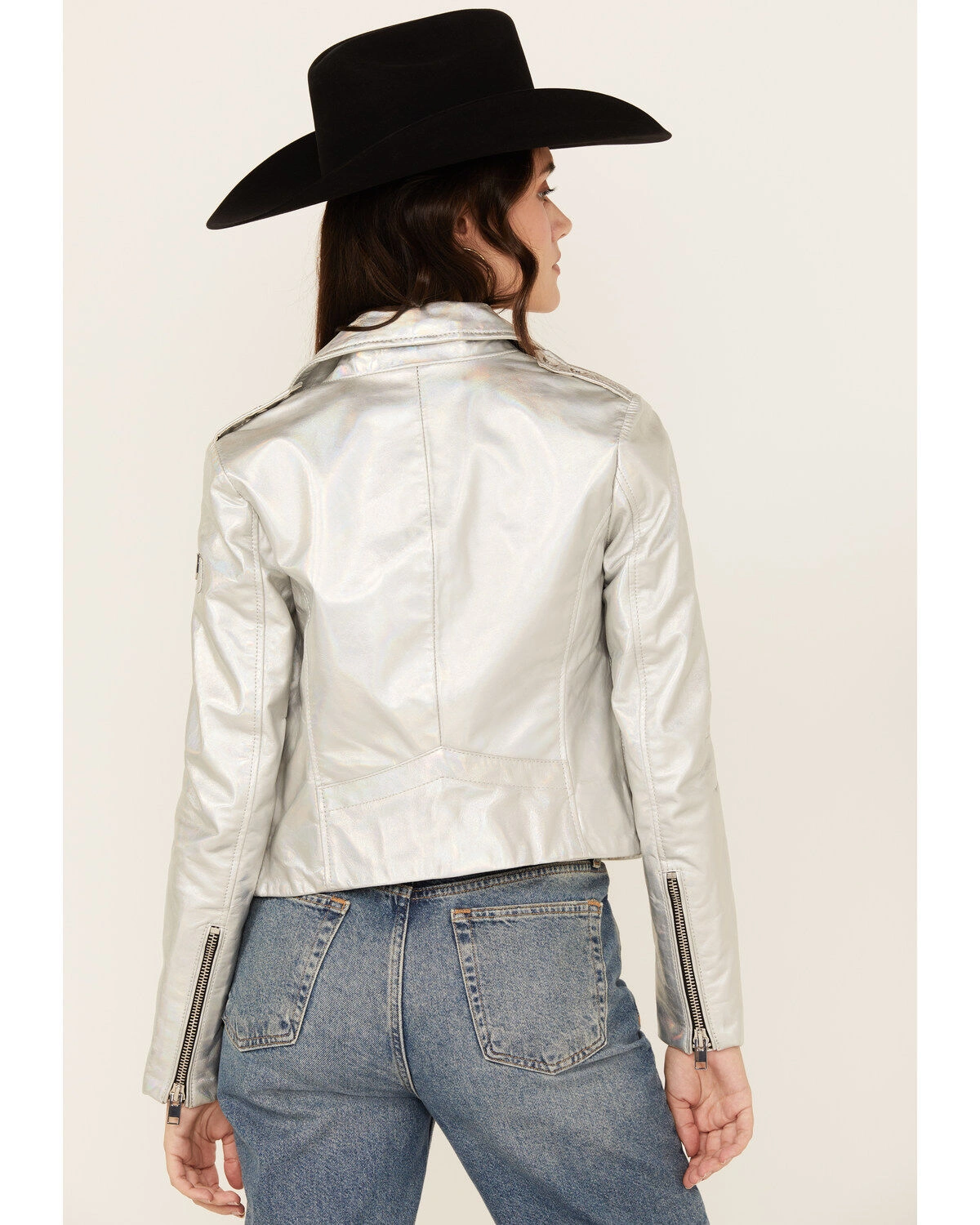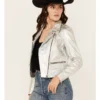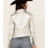 Adeni Iridescent Metallic Silver Leather Moto Jacket