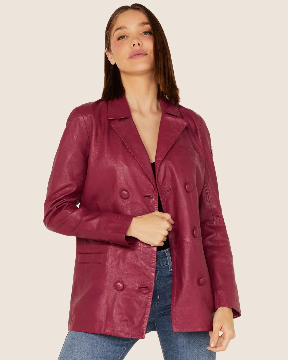 Flora Berry Women’s Leather Double-Breasted Blazer