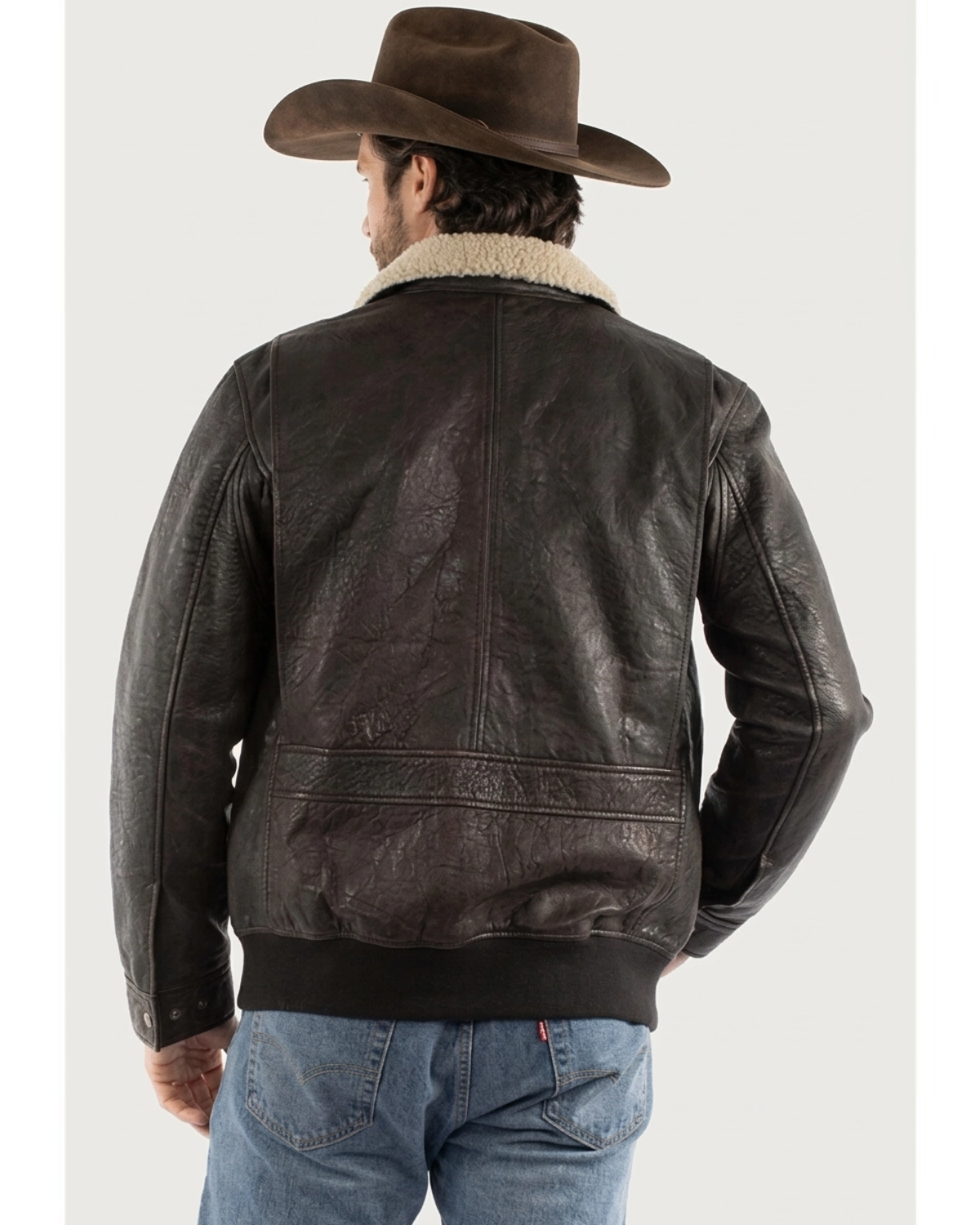 Men’s Timberwolf Black Distressed Leather Bomber Jacket