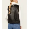 Women Avery Black Leather Shearling Aviator Vest
